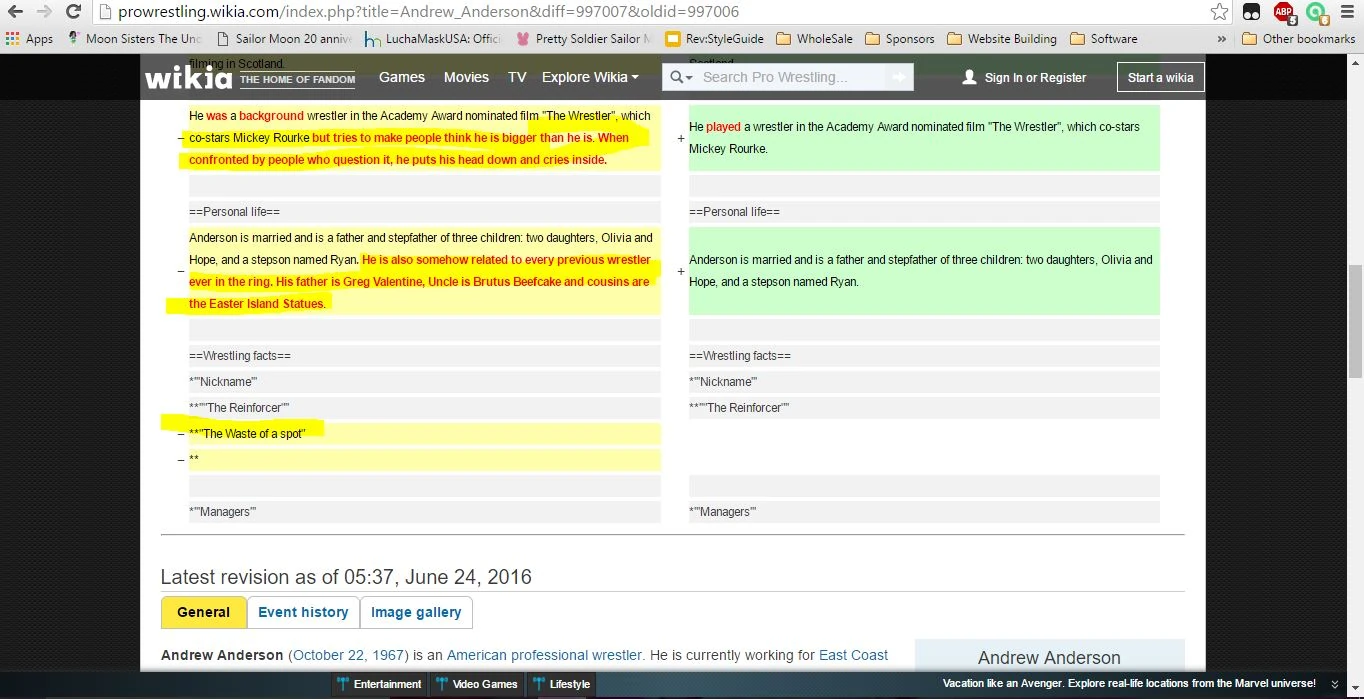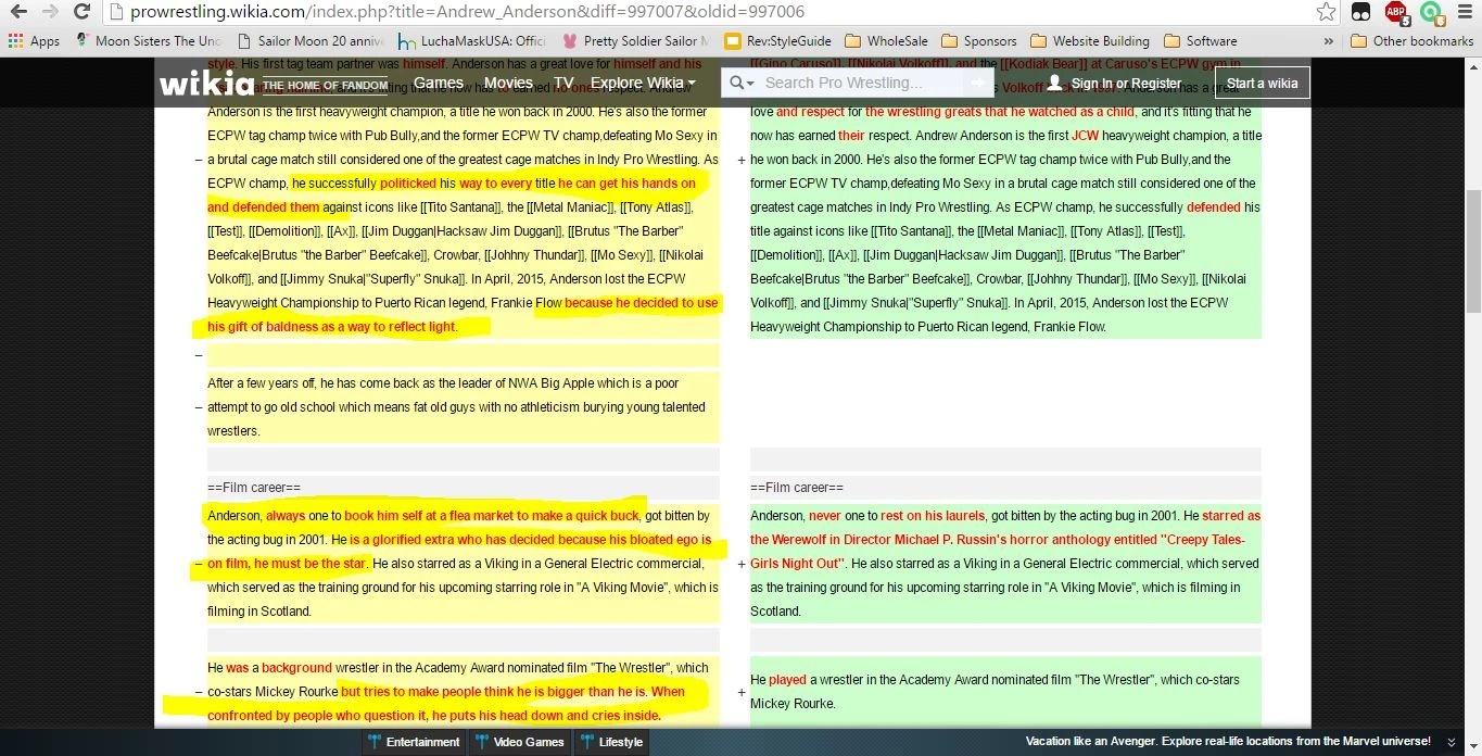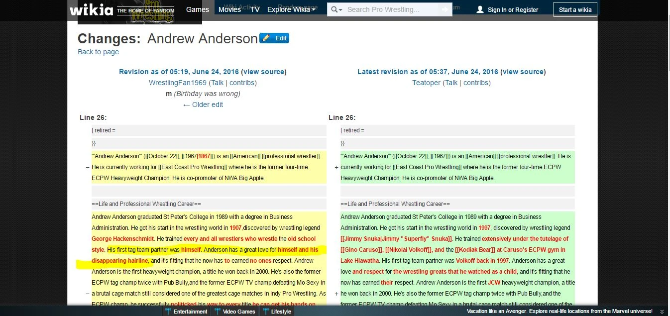 Just wanted to let you know that user WrestlingFan1969 has been vandalizing Andrew Anderson's page all morning long. He's violating the Wikia TOS and we need him to stop.